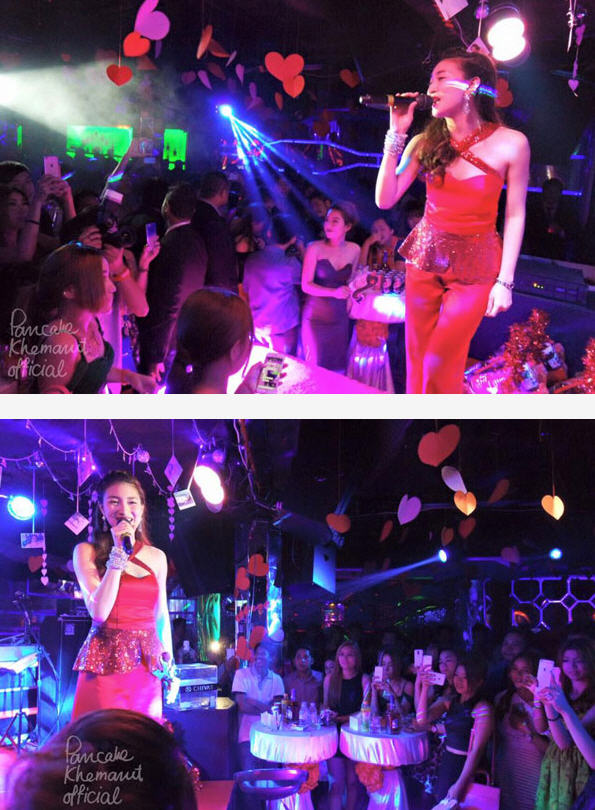 នៅក្នុងការប្រគំតន្រ្តី នារាត្រី បុណ្យនៃក្តីស្រលាញ់នេះ តារាថៃ រាងខ្ពស់ស្រឡះ នាង Pancake បានបង្ហើរសំនៀង បកស្រាយបទចម្រៀង ទាំងមនោសញ្ចេតនា និងចង្វាក់ញាក់ យ៉ាងរស់រវើក នៅលើឆាក ដែលធ្វើឲ្យកម្មវិធី នៅក្នុងក្លឹបមាន ភាពសប្បាយរីករាយ លាន់ឮតែសំឡេង សើចក្អាកក្អាយ ។