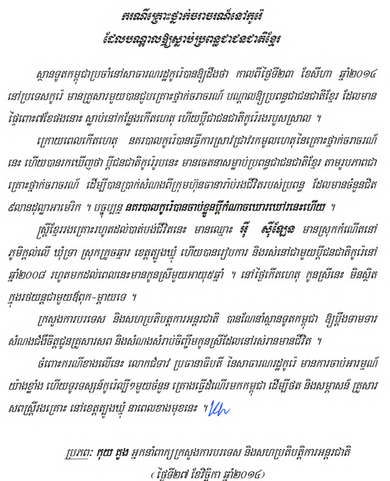ជនជាតិកូរ៉េសម្លាប់ប្រពន្ធ ជាជនជាតិខ្មែរ និងកូនក្នុងផ្ទៃ៧ខែ តាមរូបភាព គ្រោះថ្នាក់ចរាចរណ៍