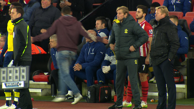 អ្នកគាំទ្រវ័យ ២៥ មួយរួប ត្រូវកម្លាំងកងសន្ដិសុខ ចាប់ខ្លួនជាប្រញាប់ ក្រោយពីបានមើលឃើញថា បុរសម្នាក់នេះ មានបំណងចូលទៅអុកឡុក បញ្ចើចឌឺដងដាក់ លោក Arsene Wenger និងជំនួយការបស់គាត់ ខណៈពេលក្រុម Arsenal ត្រូវ Southampton លត់យ៉ាងស្ពឹកមុខ ទៅហើយ។