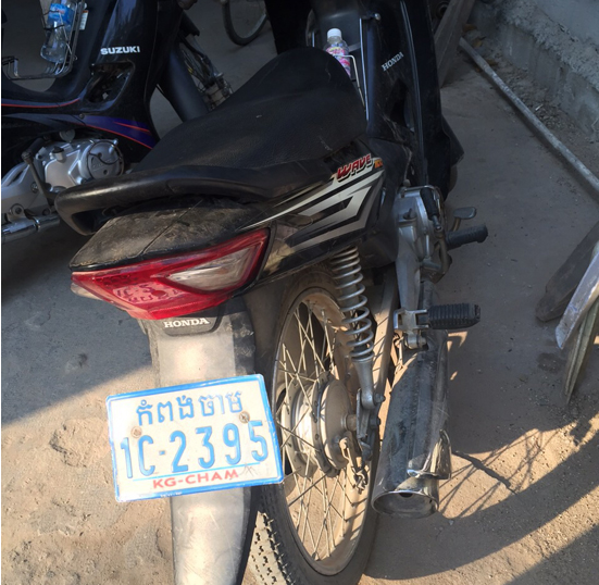 មន្រ្តីនគរបាល ព្រហ្មទណ្ឌ រាជធានីភ្នំពេញ បានឲ្យដឹងថា ជនសង្ស័យរូបនេះ បានលួចម៉ូតូនៅ ក្នុងបូរីសន្តិភាព ទឹកដី ខណ្ឌពោធិ៍សែនជ័យ ហើយបានយកម៉ូតូ របស់ជនរងគ្រោះ មកគាស់ស្លាកលេខម៉ូតូនៅម្តុំផ្លូវរថភ្លើង ទឹកដី ខណ្ឌទួលគោក ក៏ត្រូវកម្លាំងនគរបាល ចាប់ខ្លួនតែម្តង ។