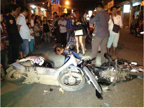គ្រោះថ្នាក់ ចរាចរណ៍ ដែលផ្ដើមចេញ ពីកំហឹងលាយកំហល់ បើកម៉ូតូមិនបានមើល គ្រប់ជ្រុងជ្រោយ ខាងលើនេះ បានកើតឡើង កាលពីវេលាម៉ោង១០និង២០នាទី យប់ថ្ងៃទី១៤ ខែមករា ឆ្នាំ២០១៥ ស្ថិតនៅមុខភោជនីយដ្ឋាន «សូរិយាហ្គាឌិន» តាមបណ្ដោយ ផ្លូវលេខ១៥៥ កែងផ្លូវលេខ៤៧២ សង្កាត់ទួលទំពូងទី១ ខណ្ឌចំការមន។