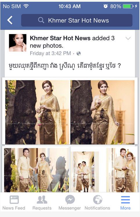 ភ្នំពេញ៖ តារាសិចស៊ី វ៉ាង ស្រីណូ ថ្មីៗនេះ បានទទួលរងព្រនង់ នៃការរិះគន់យ៉ាងចាស់ដៃ ក្រោយពីនាងត្រូវបានអ្នកលេង Facebook មួយចំនួន បានយករូបរបស់នាង ថតបង្ហាញម៉ូដឲ្យ ហាងសំអាងការមួយ ដែលគ្រងឈុតកូនក្រមុំ បែបរចនាបថថៃ ហើយនាងត្រូវបានទស្សនិកជន លើកឡើងថា បែរជាចូលរួម លើកកម្ពស់ប្រពៃណី គេមិនខ្វល់ពីប្រពៃណីជាតិ យើងទៅវិញ ។
