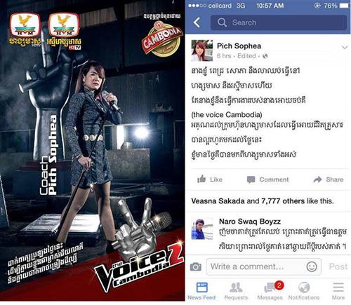 ជុំវិញរឿងរ៉ាវ ដ៏ក្ដៅគគុកនេះ តារាចម្រៀង ពេជ្រ សោភា បានប្រាប់ KhmerTALKING បែបព្រមានពីការចាកចេញនេះថា «ចាំមើលក្រោយពី The Voice Cambodia បញ្ចប់ តើមានអ្វីកើតឡើង? ព្រោះខ្ញុំមិនទាន់ហ៊ាននិយាយអ្វីច្រើនឡើយ នៅពេលនេះ..»។