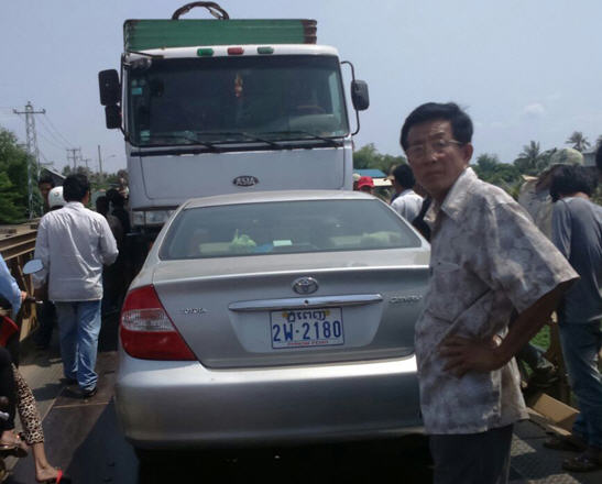 សេចក្ដីរាយការណ៍បន្ដថា មុនពេលកើត ហេតុមានរថយន្ដកាមរី បាឡែន ពណ៌ទឹកប្រាក់មួយគ្រឿង ពាក់ស្លាកលេខ ភ្នំពេញ 2W-2180 បានធ្វើដំណើរឆ្លងកាត់ស្ពានតេ បានពាក់កណ្ដាលស្ពានទៅហើយនោះ ស្រាប់តែអ្នកបើករថយន្ដដឹកទំនិញធុនធំ ដែលមកពីខាងមុខ មិនព្រមឈប់ឱ្យរថយន្ដបាឡែនធ្វើដំណើរឱ្យផុតនោះឡើយ ពោលបានបន្ដបុករុលមកលើ ស្ពានដែរ ក៏បុកពេញមួយទំហឹង បណ្ដាលឱ្យរងការខូចខាតតែម្ដងទៅ។