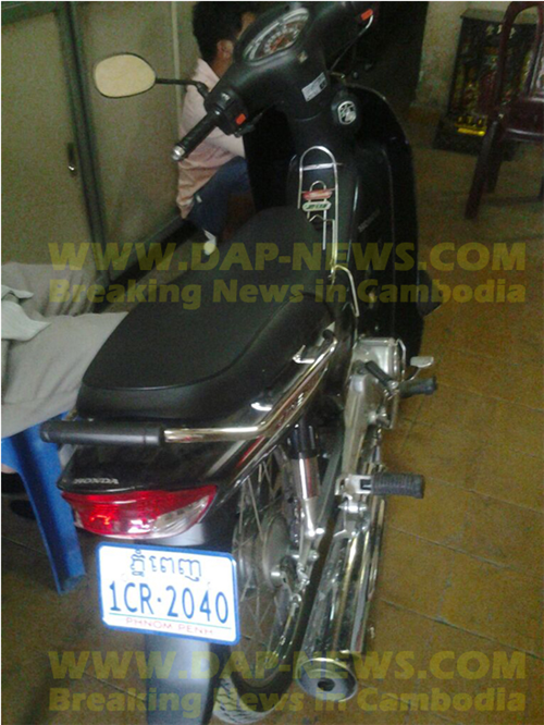 ជាមួយគ្នានេះ សមត្ថកិច្ច បានដកហូតម៉ូតូ មួយគ្រឿង ម៉ាកសេ១២៥ ពណ៌ខ្មៅ ពាក់ ស្លាកលេខ ភ្នំពេញ 1CR-2040 ។