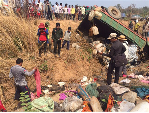 សេចក្តីរាយការណ៍ ពីសមត្ថកិច្ចបានឲ្យដឹងថា មុនពេលកើតហេតុ មានគោយន្ត ច្នៃមួយគ្រឿង បានដឹកកម្មករ ចេញពីក្នុងព្រៃ ដោយធ្វើដំណើរ តាមបណ្តោយផ្លូវលំ ស្រាប់តែចុះទួល ដាច់ហ្វ្រាំង ក្រឡាប់តែម្តង ។ សមត្ថកិច្ច បានបន្តទៀតថា ភ្លាមៗ នៅកន្លែងកើតហេតុ មានអ្នកស្លាប់៤នាក់ និងរបួស៨នាក់ ។