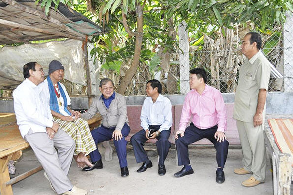 ភ្នំពេញ៖ រដ្ឋមន្ត្រីក្រសួងព័ត៌មានលោក ខៀវ កាញារីទ្ធ កាលពីថ្ងៃទី០៥ ខែមករា ឆ្នាំ២០១៥ បានធ្វើដំណើរទៅសាកសួរ សុខទុក្ខ លោក តាភិរម្យ ប្រាជ្ញ ឈួន ដែលជាវីរ់ៈ សិល្បករផ្នែកចាប៊ីដងវែង ដែលកំពុងមានជំងឺ ប្រចាំកាយសម្រាប់ នៅផ្ទះ នាភូមិ សមរក្រោម ឃុំខ្វាវ ស្រុកទ្រាំង ខេត្តកែវ។