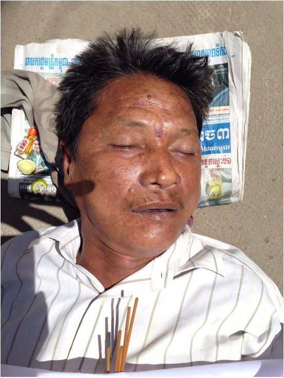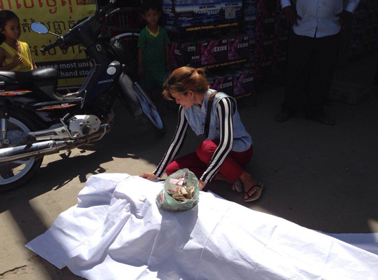 សាក្សីនៅកន្លែងកើតហេតុ បាននិយាយថា មុនពេលកើតហេតុគេ ឃើញជនរងគ្រោះ បើកម៉ូតូ ម៉ាក ហុងដា ឌ្រីម សេ១២៥ ស៊េរីឆ្នាំ២០០៦ ពណ៌ខ្មៅ ពាក់ស្លាកលេខ ភ្នំពេញ 2O-1607 ពីជើងទៅត្បូង ដោយបញ្រ្ជាស ទិសបើកអែបចិញ្ចើមផ្លូវ ជាន់ហ្រ្វាំង ស្រាប់តែដួល ពីលើម៉ូតូហើយស្លាប់តែម្តង ។