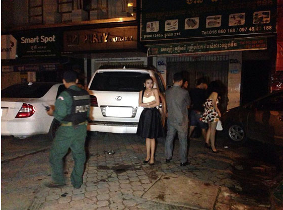 បើតាមមន្រ្តីនគរបាល បានឲ្យដឹងថា នៅមុនពេលកើតហេតុ បុរសម្នាក់ រួមនិងនារីស្រស់ស្អាតម្នាក់ ជិះរថយន្ត Lexus LX570 ពាក់ស្លាកលេខ ភ្នំពេញ 2V-0555 ជាមួយអាការៈស្រវឹង។ លុះដល់កន្លែងកើតហេតុ បានកៀររថ យន្ត Toyota Prius ពណ៌ទឹកប្រាក់ គ្មានស្លាកលេខ មួយគ្រឿងក្នុងទិសដៅស្របគ្នា បណ្តាលឲ្យខូចខាតទ្វារ ផ្នែក ខាងឆ្វេង នៃរថយន្តមួយចំហៀង។