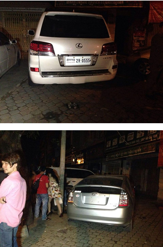 ភ្នំពេញ៖ ព្រោះតែជាតិអាល់កុលពង្វក់គ្រប់គ្រងស្វារតីលែងបាន បុរស រួមនិងនារីស្រស់ស្អាតម្នាក់ បានបើករថយន្ត Lexus LX570 របស់ខ្លួនទៅកៀររថយន្ត Toyota Prius ហើយព្យាយាមបើករត់ តែត្រូវបានភាគីម្ចាស់រថយន្ត Prius រួមនិងមិត្តភក្តិ ប្រដេញតាមស្ទាក់ជាប់។ ទីបំផុតម្ចាស់រថយន្តបង្កហេតុយល់ព្រមប្រគល់ថវិកា ៤០០ដុល្លារ ជាសំណង ដើម្បីបញ្ចប់រឿង។