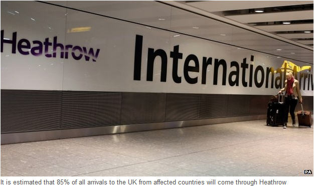 ព័ត៌មានអន្តរជាតិ ៖ អាកាសយានដ្ឋានអន្តរជាតិ Heathrow ភាគខាងលិច ទីក្រុងឡុងដ៍ ប្រទេស អង់ គ្លេស បានចាប់ផ្តើមយុទ្ធនាការ តាម ដានយ៉ាងម៉ត់ចត់ ទៅលើក្រុមមនុស្សជាអ្នកធ្វើដំណើរ នៅតាម ច្រកចេញចូល យន្តហោះ ដែលបានធ្វើដំណើរចូល ចក្រភពអង់គ្លេស ពីបណ្តាប្រទេស ប្រ ឈម ខ្លាំង និងហានិភ័យខ្លាំងជម្ងឺ Ebola នេះបើយោងតាមការដកស្រង់ អត្ថបទផ្សាយ ពីទំព័រ ប៊ីប៊ីស៊ី ។