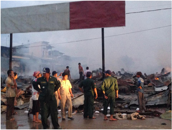 យោងតាមរបាយការណ៍ របស់សមត្ថកិច្ចបានអះអាងឲ្យដឹងថា ករណីឆេះផ្សារខាងលើនេះ បានកើតឡើងនៅវេលា ម៉ោង ០០ និង៥៥នាទី ឈានចូលថ្ងៃទី២៦ ខែវិច្ឆិកា ឆ្នាំ២០១៤ ដែលទីតាំងផ្សារខាងលើស្ថិតនៅតាមបណ្តោយផ្លូវ ជាតិលេខ ១ ក្នុងភូមិប្រាសាទ ឃុំប្រាសាទ ស្រុកកំពង់ត្របែក ខេត្តព្រៃវែង ដែលតូបទាំងអស់សាងសង់ពីឈើ ។ ចំណែកផ្ទះដែលរងនូវការឆេះមានទីតាំង នៅជុំវិញផ្សារនោះ ភាគច្រើនសាងសង់ពីថ្ម និងប្រក់ស័ង្កសី ។