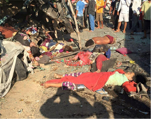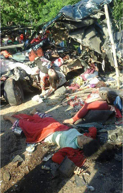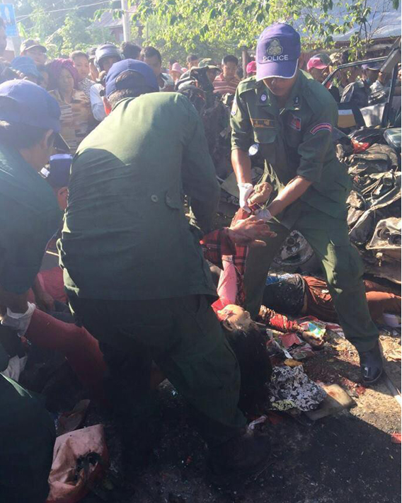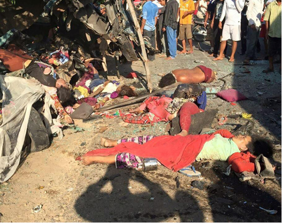 ស្វាយរៀង៖ គ្រោះថ្នាក់ចរាចរណ៍ដ៏រន្ធត់បង្កឡើងដោយ រថយន្តក្រុង បុករថយន្តដឹកកម្មករ បណ្តាលឲ្យកម្មករ ២១នាក់ស្លាប់រដូករណែលពេញដងផ្លូវយ៉ាងសង្វេគជាទីបំផុត ខណៈកម្មករជាង ១០នាក់ផ្សេងទៀតរងរបួសធ្ងន់ ស្រាល ត្រូវបានបញ្ជូនទៅសង្រ្គោះបន្ទាន់ ដោយអ្នកខ្លះមានសង្ឃឹមតិចតួចក្នុងការស្រោចស្រង់ជីវិត។