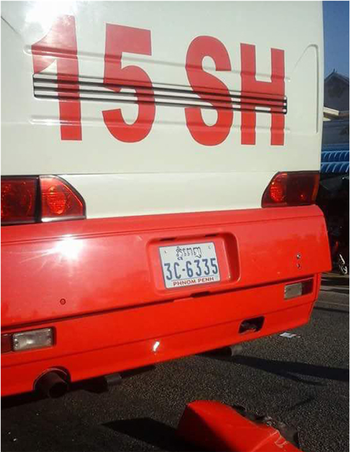 រថយន្តក្រុង ដែលបុករថយន្តដឹកកម្មករ ជារបស់ក្រុមហ៊ុនដឹកអ្នកដំណើរកម្ពុជា-វៀតណាម 15SH។ ក្រុមហ៊ុនដឹកអ្នកដំណើររបស់វៀតណាម មានទីតាំងស្ថិតនៅជាប់របងពហុកីឡដ្ឋានជាតិអូឡាំពិក ក្បែងកន្លែងលក់ផ្លែឈើចាស់។