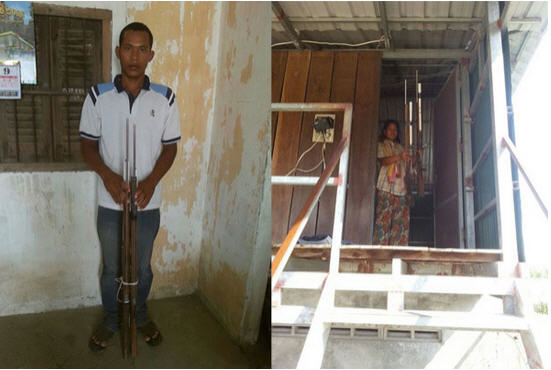 ក្រោយពេលកើតហេតុស្ដ្រី រងគ្រោះដែលត្រូវជាប្រពន្ធបានមក ប្ដឹងសមត្ថកិច្ចឱ្យជួយធ្វើអន្ដរាគមន៍ ក្នុង ករណីប្ដីប្រើហិង្សាលើខ្លួន ។ ក្នុងពេល សមត្ថកិច្ចចុះទៅដល់បានឃាត់ខ្លួនជនសង្ស័យរូបនោះ ហើយ បានឆែកឆេររក ឃើញអាវុធកែច្នៃខុសច្បាប់ដែលជន សង្ស័យលាក់ទុកក្នុងផ្ទះទៀតផង ។