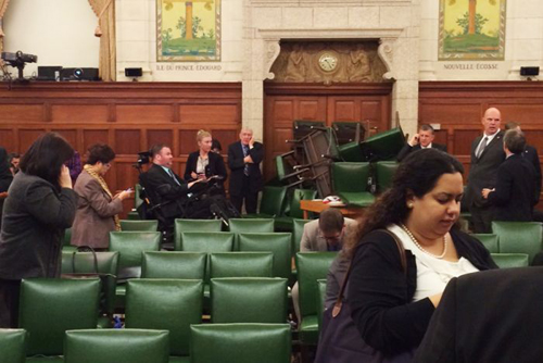 តំណាងរាស្ដ្រ កាណាដា យកកៅអីទប់ទ្វារសាលប្រជុំ នៅពេលហេតុការណ៍បាញ់រះ