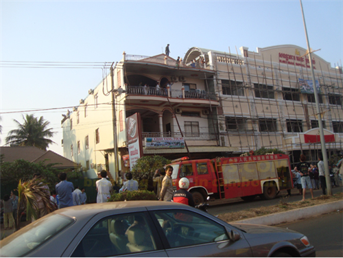 បើតាមប្រភពព័ត៌មាន ពីម្ចាស់ផ្ទះសំណាក់បានឲ្យដឹងថា នៅមុនពេលកើតហេតុ រូបគាត់ឃើញមាន ផ្សែងហុយ ផ្នែកខាងក្រោយ នៅជាន់ទី២ ទើបមានការភ្ញាក់ផ្អើលឆោឡោ ហើយបានទូរស័ព្ទហៅ រថយន្តពន្លត់អគ្គីភ័យ របស់ស្នងការនគរបាលខេត្តចំនួន១គ្រឿង ជួយបាញ់ទឹក ពន្លត់ទាន់ពេលវេលា ។ ម្ចាស់ផ្ទះខាងលើ ប្រាប់បន្តឲ្យដឹង ទៀតថា អគ្គីភ័យនេះបណ្តាលមកពីទូសេ្សខ្សែភ្លើង ហើយពុំមានខូចខាតទ្រព្យ សម្បត្តិនោះ ទេ គ្រាន់តែមានស្នាមឆេះខ្លោចអស់ស័ង្កសីពីរ បី សន្លឹកតែប៉ុណ្ណោះ។