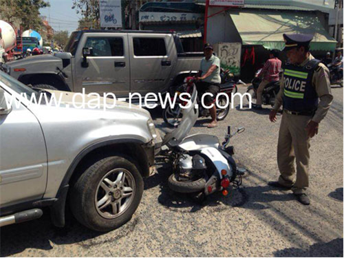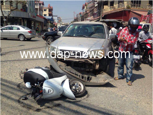 ភ្នំពេញ៖ សិស្សវិទ្យាល័យទួលទំពូងម្នាក់ ត្រូវបានរថយន្តបុកចំពីចំហៀង ដួលកៀបជាប់ជាមួយនិងម៉ូតូ នៅម៉ោង១២ ថ្ងៃត្រង់ថ្ងៃទី៤ ខែកុម្ភ: ឆ្នាំ២០១៥ នៅចំណុចផ្លូវលេខ៤៣០ កែងផ្លូវបំបែកជា៥ សង្កាត់ទំនប់ទឹក ខណ្ឌចំការមន ប៉ុន្តែសំណាងល្អ គ្រាន់តែរបួសរលាត់ដៃជើងបន្តិច។