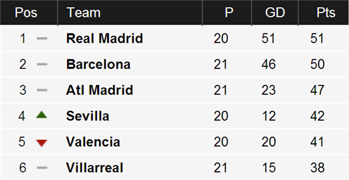 Barcelona ទទួលបានជោគជ័យ ខណៈពេលនេះ ក្រុមនៅតែរក្សាតំណែង ជាម្ចាស់លេខរៀង ទី ២ ដដែល បន្ទាប់ពី Real Madrid ដែលកំពុងឈរលើ លេខរៀងលំដាប់កំពូល ដែលមានពិន្ទុ ដល់ទៅ ៥១ ពិន្ទុ ក្នុងដៃ។