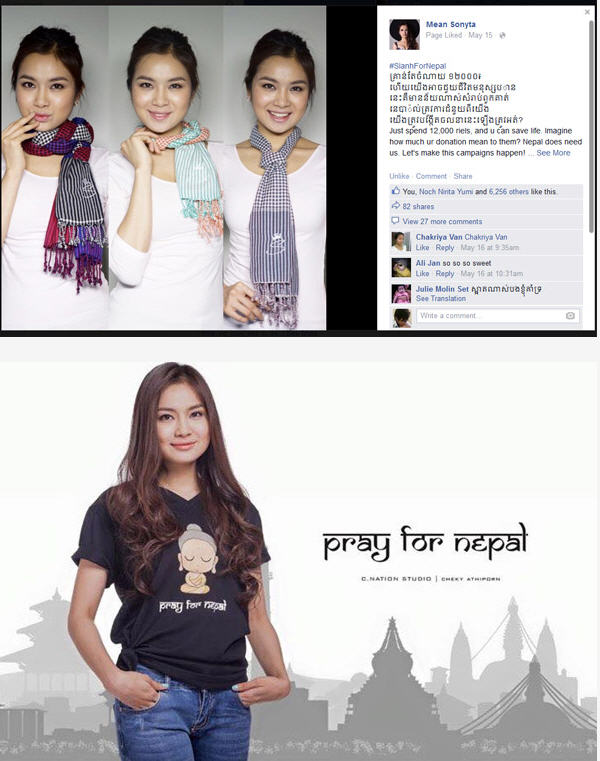 ស្របពេលដែលប្រទេសនេប៉ាល់ កំពុងតែត្រូវការជំនួយយ៉ាងច្រើន យកទៅកសាងប្រទេសខ្លួនវិញ ក្រោយពីជួប គ្រោះរញ្ជួយដីផ្ទួនៗគ្នា២លើករួចមក គេសង្កេតឃើញថា តារាសម្តែងស្រីរូបស្រស់ សំឡេងផ្អែមស្រទន់ កញ្ញា មាន សូនីតា បានលេចវត្តមានស្វែងរកជំនួយ ទៅជួយប្រទេសមួយនេះ ដោយនាងបានប្រកាសជាសាធារណៈថា « ខ្ញុំចង់ចូលរួមចំណែកជួយ ទៅដល់ប្រទេសនេប៉ាល់ ដោយយើងមានក្រមាប្រមាណ៥០០ក្រមា មានដាក់ Logo សម្រាប់លក់ក្នុងតម្លៃ ១២០០០រៀល ដែលប្រាក់ចំណេញ ខ្ញុំនឹងយកទៅជួយប្រទេសនេប៉ាល់ ជាមួយក្តីស្រលាញ់របស់នីតានេះតែម្តង…»។