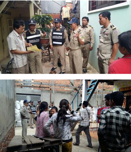 ភ្នំពេញ៖ កម្លាំងនគរបាលអន្តោប្រវេសន៍ ដឹកនាំដោយលោកឧត្តមសេនីយ៍ទោ អ៊ុក ហៃសិឡា ប្រធាននាយកដ្ឋានស៉ើបអង្កេត និងអនុវត្តនីតិវិធី និងដោយមានឯកភាពតាមផ្លូវច្បាប់ ពីតំណាងអយ្យការផងនោះ នៅវេលាម៉ោង៣ រសៀលថ្ងៃទី២៩ ខែកញ្ញា ឆ្នាំ២០១៥នេះ បានចុះត្រួតពិនិត្យ និងឃាត់ខ្លួនជនជាតិវៀតណាម ១២នាក់ (ប្រុស៥នាក់) នៅភូមិដើមស្លែង សង្កាត់ច្បារអំពៅទី២ ខណ្ឌច្បារអំពៅ ពីបទរស់នៅគ្មានច្បាប់។