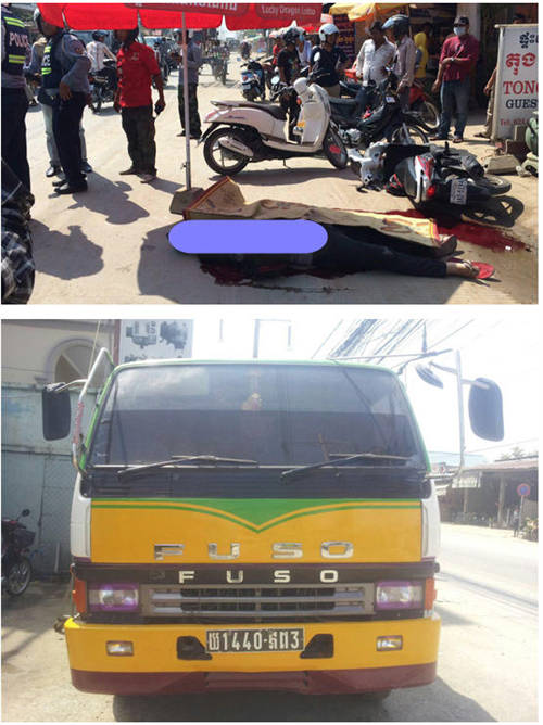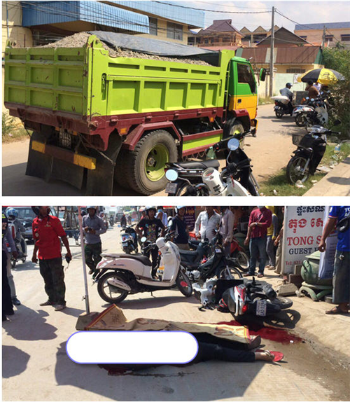 ភ្នំពេញ ៖ យុវជនជានិស្សិតម្នាក់ ត្រូវបានរថយន្ដដឹកដី កិនបែកក្បាលស្លាប់ ភ្លាមៗ នៅនឹងកន្លែងកើតហេតុ ខណៈដែល ជនរងគ្រោះ កំពុងជិះម៉ូតូតែម្នាក់ឯងហើយ ដួលចូលក្រោមរថយន្ដ ។