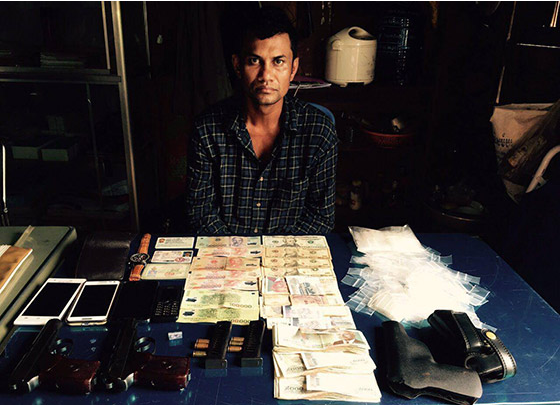 មន្រ្តីនគរបាលបាននិយាយថា វត្ថុតាងដែលរឹបអូសបានរួមមាន៖ សារធាតុញៀនមួយចំនួន កាំភ្លើងខ្លីម៉ាក K59 ចំនួន ២ដើម និងគ្រាប់មួយចំនួន រថយន្តម៉ាកម៉ុងតេរ៉ូ ពណ៌ត្រេអ៉ី ១គ្រឿង និងប្រាក់រៀលមួយចំនួន៕