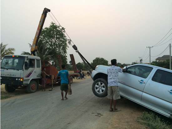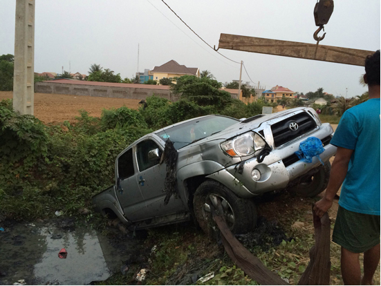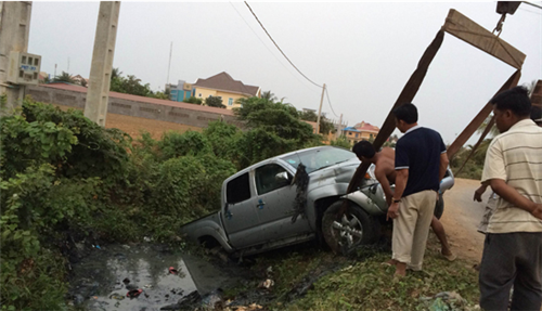 បាត់ដំបង៖ រថយន្តម៉ាកតាកូម៉ា១គ្រឿង ទំនងម្ចាស់ បានបើកចេញពី ច្រៀងខារ៉ាអូខេ ក្នុងសភាព ស្រវឹងជោគជាំបានបើក ក្នុងល្បឿនលឿន ពេលដល់ផ្លូវបត់កែង ជ្រុលចង្កូត បណ្តាលឲ្យធ្លាក់ប្រឡាយទឹក កាលពីវេលាម៉ោង ជាង១២យប់រំលង អាធ្រាត្រឈាន ចូលថ្ងៃទី២០ខែមីនា ឆ្នាំ២០១៥ នៅចំណុច ជិតផ្លូកោងហាង ខារ៉ាអូខេព្រីនសេស ស្ថិតក្នុងភូមិ .សង្កាត់រតនៈក្រុងបាត់ដំបង សំណាងល្អគ្មាន អ្នករបួសធ្ងន់និងស្លាប់ទេ។