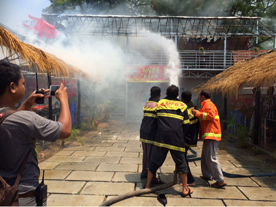 កណ្តាល៖ ភ្លើងឆេះហាង យីហោ «តាម៉ៅសាច់អាំង» នៅភូមិថ្មី២ សង្កាត់តាខ្មៅ ក្រុងតាខ្មៅ ត្រូវភ្លើងឆាបឆេះ កាលពីវេលាម៉ោង ១២៖៣០នាទីរសៀលថ្ងៃទី៧ ខែមេសា ឆ្នាំ២០១៥ ។