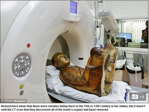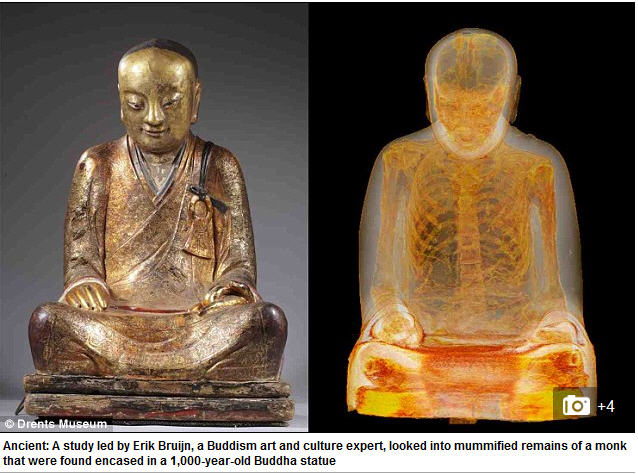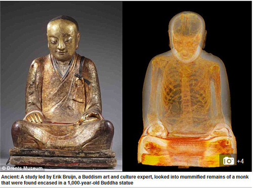 ព័ត៌មានអន្តរជាតិ ៖ គួរបញ្ជាក់ថា សាកសពព្រះសង្ឃ ត្រូវបានអ្នកវិទ្យាសាស្រ្ត រកឃើញនៅក្នុង រូបសំណាក ព្រះពុទ្ធមួយអង្គស្រោបមាស ដែលមានអាយុកាល ប្រហែលជាង ១០០០ឆ្នាំមកហើយដោយអ្នកវិទ្យាសាស្រ្ត បានប៉ាន់ស្មានរូបសំណាក ព្រះពុទ្ធ និងសាកសពព្រះសង្ឃ ស្ថិតនៅសតវត្សទី ១១ ឬទី ១២ ។ នេះបើតាម ការ ចេញ ផ្សាយពីទំព័រ សារព័ត៌មានបរទេស ដេលីម៉ែល កាលពីថ្ងៃទី២២ ខែកុម្ភៈ ឆ្នាំ២០១៥កន្លងទៅ។