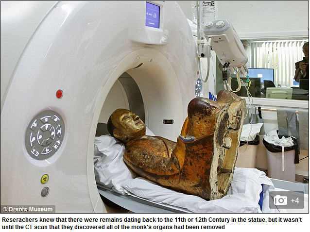 យ៉ាងណាមិញ បើយោងតាម Colossal បាននិយាយថា មុនពេលស្កេន ក្រុមអ្នកស្រាវជ្រាវ បានឃើញសាក សព ព្រះសង្ឃមួយនៅក្នុងរូបចម្លាក់នេះ បន្ទាប់មកក៏ចាប់ផ្តើម ស្កេន រូបសំណាកព្រះពុទ្ធ ក្រុមអ្នកស្រាវជ្រាវ បានរកឃើញមានសរីរាង្គព្រះសង្ឃក្នុងនោះ តែម្តង។