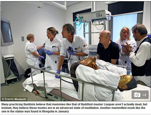 របាយការណ៍ បន្ថែមអោយដឹងថាលោក Erik Bruijn ជាប្រធានស្រាវជ្រាវ វិទ្យាសាស្រ្ត និងជាអ្នកជំនាញខាង ព្រះពុទ្ធសាសនា ថាសាកសពព្រះសង្ឃមួយអង្គនេះ គឺ ជា គ្រូព្រះពុទ្ធសាសនា Liuquan ដែលជាកម្មសិទ្ធិ របស់សមាធិសាលាចិន (Chinese Meditation School )។ បន្ថែមពីលើនេះ ប្រភព បញ្ជាក់អោយដឹងថា ការ ស្កេនរូបសំណាកព្រះពុទ្ធ១០០០ ឆ្នាំនេះ ត្រូវបានអនុវត្តដោយសារមន្ទីរ Drents នៅមជ្ឈមណ្ឌល វេជ្ជសាស្ត្រ Meander នៅប្រទេសហូឡង់ ។