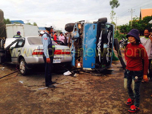 កណ្តាល ៖ កុមារាអាយុ ៧ឆ្នាំម្នាក់ បានស្លាប់បាត់បង់ ជីវិត និងមនុស្សប្រុស-ស្រី ៧នាក់ផ្សេងទៀត បានរងរបួស ដោយសារគ្រោះថ្នាក់ចរាចរ ដ៏រន្ធត់មួយ លើផ្លូវជាតិលេខ៤ ពេលកំពុងធ្វើដំណើរទៅកម្សាន្តនៅតាមខេត្ត។ នេះបើ យោងតាម លោក មាន សំណាង អធិការនគរបាលស្រុកអង្គស្នួល។
