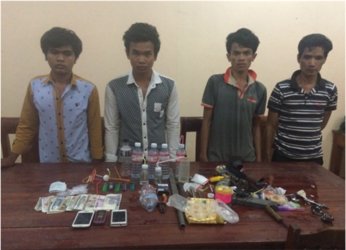តាមមន្ដ្រីអាវុធហត្ថ ក្នុងប្រតិបត្ដិការ ខាងលើនេះ ក្រៅពីការចាប់ខ្លួនជនសង្ស័យ ទាំង៤នាក់ សមត្ថកិច្ចបាន ដកហូតវត្ថុតាងជា ច្រើន ផងដែរ ។