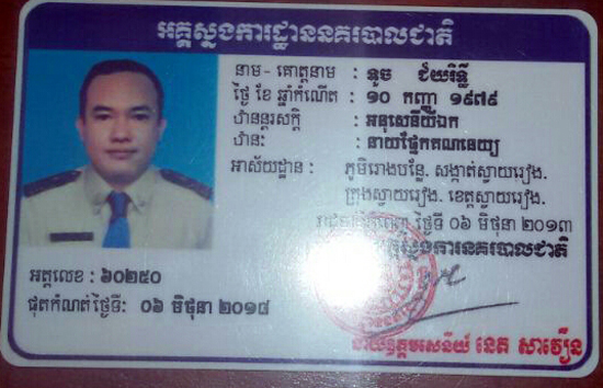 មន្ត្រីកងរាជអាវុធហត្ថ សុំមិនបញ្ចេញឈ្មោះ បានឲ្យមជ្ឈមណ្ឌលព័ត៌មាន ដើមអម្ពិលដឹងថា មន្រ្តីនគរបាល ដែលបាញ់បោះខាងលើមាន ឈ្មោះ ទូច ជ័យរិទ្ធី ហៅប្រុស ភេទប្រុស អាយុ៣៨ឆ្នាំ មុខរបរឋានៈ ថ្នាក់ អនុសេនីយ៍ឯក នាយផ្នែកគណនេយ្យ បំរើការនៅខេត្តស្វាយរៀង មានទីលំនៅបច្ចុប្បន្ន ភូមិរោងបន្លែ សង្កាត់ស្វាយរៀង ក្រុងស្វាយរៀង ខេត្តស្វាយរៀង និងទីលំនៅមួយទៀត ស្ថិតក្នុងភូមកំពង់បាយខាងជើង សង្កាត់កំពង់បាយ ក្រុងកំពត ខេត្តកំត។