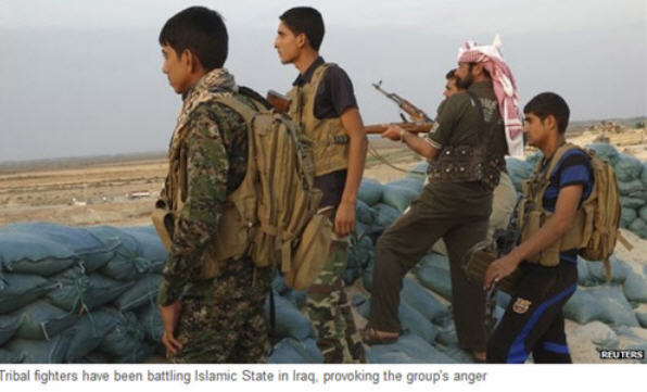 ព័ត៌មានអន្តរជាតិ ៖ ប្រភពពីកងកម្លាំងខេត្ត អោយដឹងថា ក្រុមសកម្មប្រយុទ្ធរដ្ឋអ៊ីស្លាម ជ្រុលនិយម IS បានបន្តសម្លាប់យ៉ាងសាហាវ មនុស្សកុលសម្ព័ន្ធ ៣៦ នាក់ទៀត ក្នុងនោះរួមមាន ស្រ្តី និង កុមារ នៅឯ ភាគខាងជើងប្រទេសអ៊ីរ៉ាក់ ខេត្ត Anbar កាលពីថ្ងៃច័ន្ទ ម្សិលមិញនេះ ខណៈជាផ្នែកមួយនៃការសម្លាប់ រង្គាលក្នុងរយៈពេលប៉ុន្មានថ្ងៃចុងក្រោយនេះ ទប់ទល់នឹងក្រុមកុលសម្ព័ន្ធ Sunni សម្រាប់ អ្វីដែលក្រុម IS កំណត់បានថា ពួកគេមានការប្រយុទ្ធ វាយបកក្រុមសកម្មប្រយុទ្ធរបស់ខ្លួន ។