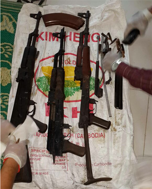 មន្រ្តីនគរបាល ព្រហ្មទណ្ឌ រាជធានីភ្នំពេញ ដែលចូលរួម នៅក្នុងប្រតិបត្តិការខាងលើនេះ បានឲ្យដឹងថា ក្រោយបញ្ចប់ ការចុះ ទៅឆែកឆេរ នៅផ្ទះឪពុកម្តាយរបស់ ឧកញ៉ា ថោង សារ៉ាត់ ដែល ជាមេខ្លោង នៅពីក្រោយខ្នង នៃអំពើឃាតកម្ម លើលោកឧកញ៉ា អ៊ឹង ម៉េងជឺ នោះ សមត្ថកិច្ច បានរកឃើញ កំាភ្លើងអាកាចំនួន៣ដើម ត្រូវបានលាក់ទុកនៅទីនោះ។