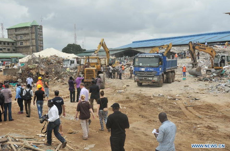ព័ត៌មានអន្តរជាតិ ៖ ប្រជុំរូបភាព ខាងក្រោមនេះ បើតាមការដកស្រង់ សម្រង់អត្ថបទផ្សាយ ពីគេហទំព័រ សារព័ត៌មានរដ្ឋចិន ស៊ិនហួរ អោយដឹងថា ជាប្រជុំរូបភាព ដែលត្រូវបានផ្តិតឡើង នៅថ្ងៃទី ១៧ សីហា ឆ្នាំ២០១២ ម្សិលមិញនេះ នៅឯ ទីកន្លែងកើតហេតុ នៃការបាក់រលំ សំណង់អាគារ មួយកន្លែងក្នុងទីក្រុង Lagos ប្រទេស នីហ្សេរីយ៉ា ។