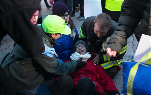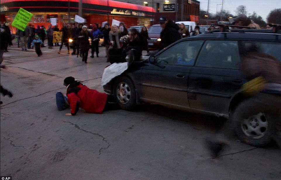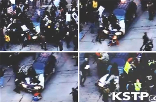 វីដេអូ ថតបានជាក់ស្តែង ពីឧទ្ធម្ភាគចក្រ KSTP សរ បញ្ជាក់ អោយឃើញ ពីរថយន្តមួយ គ្រឿងបានបើកមុខឈប់ នៅក្នុងហ្វូងបាតុករ ដែល កំពុង តែមានការផ្ទុះការតវ៉ា ប្រឆាំងទៅនឹងសេចក្តី សម្រេចចិត្តរបស់តុលាការកំពូល ពាក់ព័ន្ធមិន ចោទ ប្រកាន់ ក៏ដូចជា ផ្តន្ទាទោស មន្រ្តីប៉ូលីសឈ្មោះ លោក Darren Wilson ក្រោយពីបានបាញ់សម្លាប់យុវជនស្បែក ខ្មៅមួយរូប ឈ្មោះ Michael Brown ។