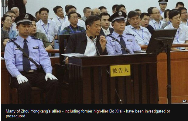 ព័ត៌មានអន្តរជាតិ ៖ អតីតប្រធាន សន្តិសុខ ប្រទេសចិន លោក Zhou Yongkang ត្រូវបានចោទប្រកាន់ ពីបទ ប្រព្រឹត្តិអំពើពុករលួយ រំលោភបំពានអំណាច និង ធ្វើអោយបែកធ្លាយ ព័ត៌មានសម្ងាត់រដ្ឋជាដើម ទៅបណ្តាប្រទេសផ្សេងៗទៀត នេះបើយោងតាមសេចក្តីរាយការណ៍ ពីសារព័ត៌មានរដ្ឋ ។