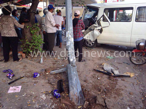 ភ្នំពេញ៖ នារីម្នាក់ ខណៈចេញពីធ្វើការ បានតក់ស្លត់យ៉ាងខ្លំាង ស្ទើរសន្លប់បាត់ស្មារតី បន្ទាប់ពីបានទទួលដំណឹង និងឃើញឳពុកខ្លួន ដែលកំពុងអង្គុយរង់ចំាទទួលនោះ ត្រូវរថយន្តបុកផ្ទុប និងបង្គោលភ្លើងស្លាប់ភ្លាមៗ នៅម៉ោង៤៖២៥ នាទីទៀបភ្លឺ ថ្ងៃទី១៣ ខែវិច្ឆិកា ឆ្នាំ២០១៤ ត្រង់ចំណុចស្ថានីយប្រេងឥន្ធនៈសូគីម៉ិច ក្នុងសង្កាត់ទន្លេបាសាក់ ខណ្ឌចំការមន។