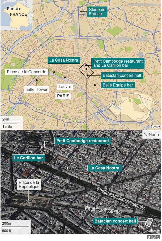 គួរបញ្ជាក់ផងដែរថា មានករណីបាញ់ប្រហារ និងបំផ្ទុះគ្រាប់បែក នៅកន្លែងសាលប្រគុំតន្រ្តី Bataclan ព្រមទាំង ភោជនីយដ្ឋាន, ក្លឹបកម្សាន្ត និង កន្លែងជាច្រើនជុំវិញទីក្រុងប៉ារីស ដែលមកដល់ពេលនេះ មានមនុស្សស្លាប់ចំនួន ១២៨នាក់ និងរបួស ៩៩នាក់៕